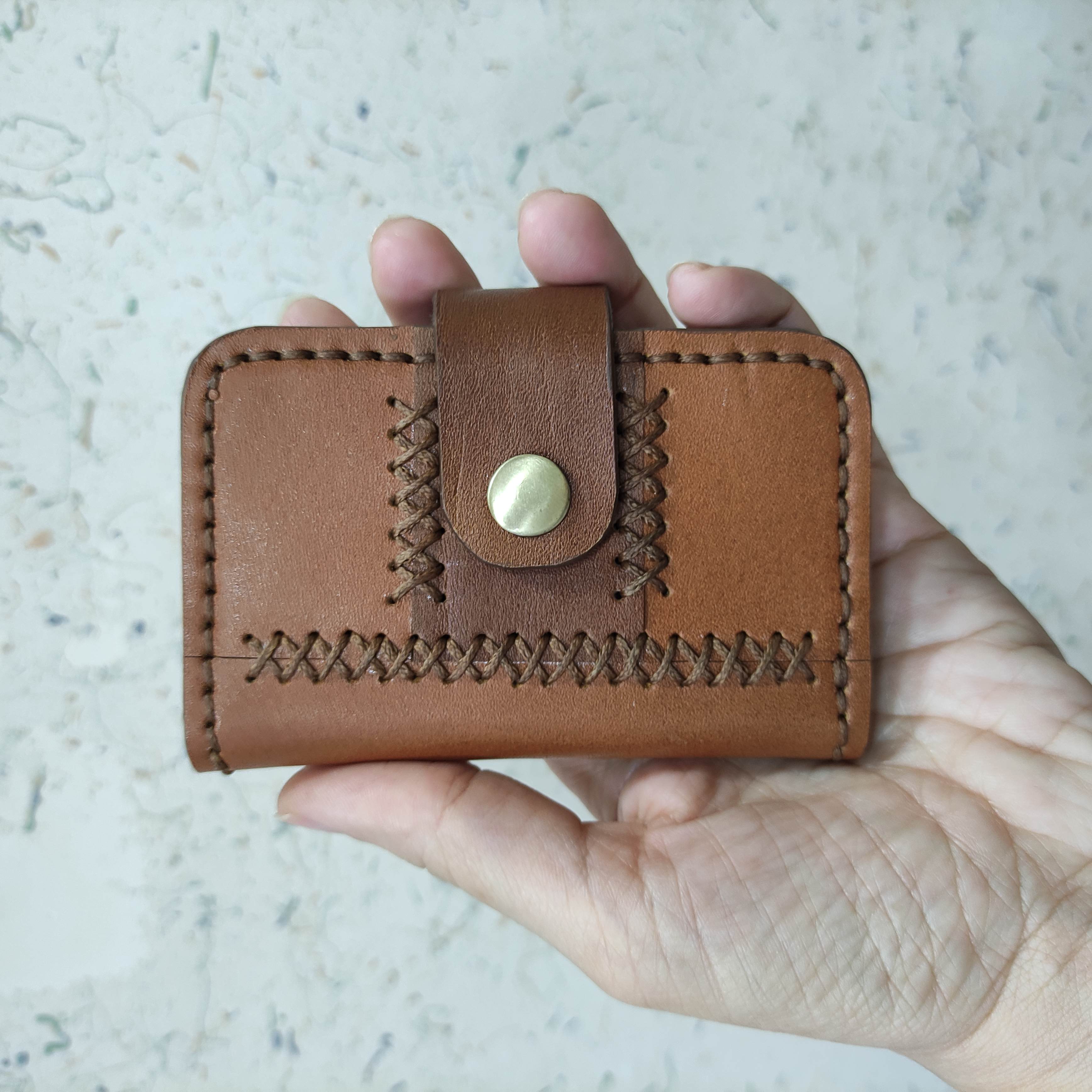 جاکارتی آکاردعونی چرم مردانه/زنانه دلوان کاملا دستدوز و دستساز عسلی