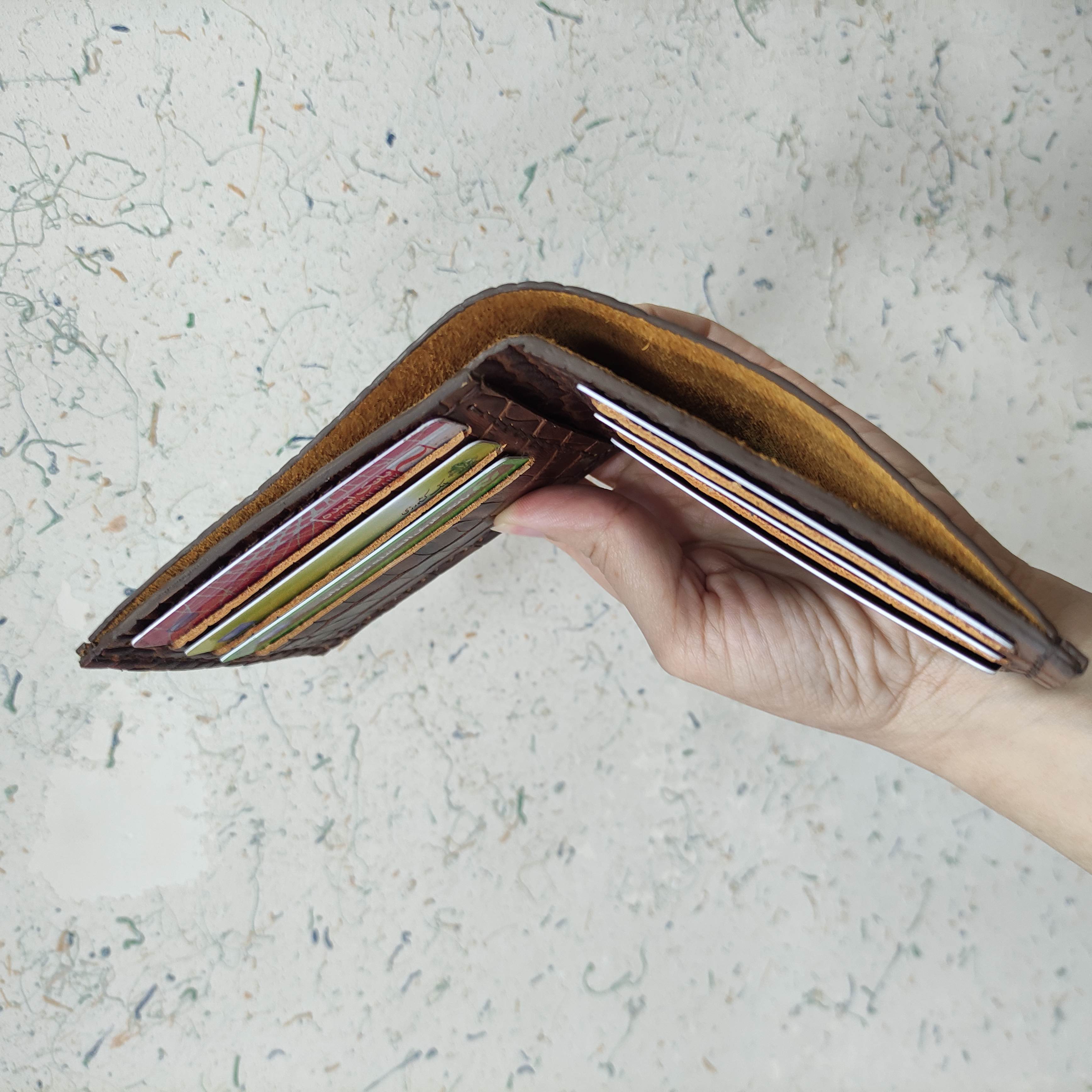 کیف پول تاشوی مردانه،دستدوز و دستساز،ساخته شده از چرم گاوی،جای ۶عدد کارت داره،یه جای پول و دو جای مخفی برای کارت ،پول و ... داره