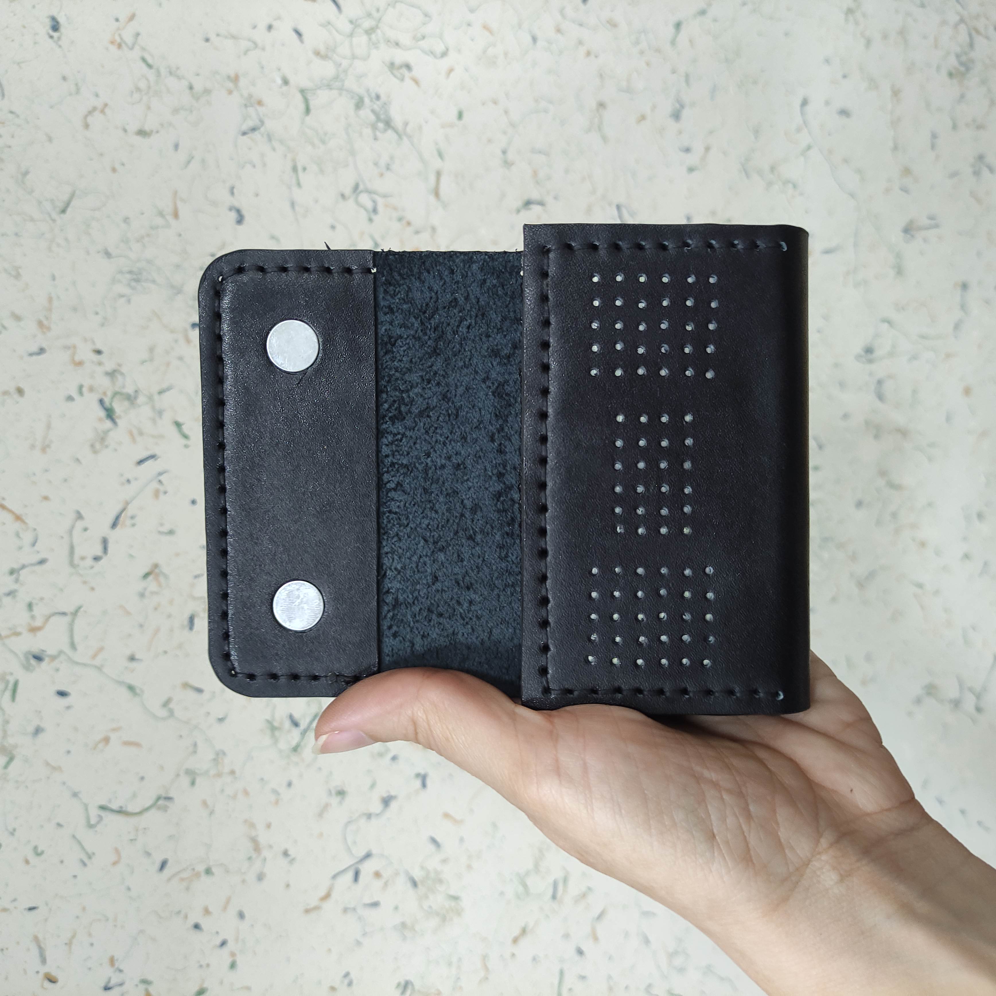 جنسچرم طبیعی گاویرنگمشکیسایز10/5*7ساختدستدوز و دستسازتعداد کارت12عدد کارتمدل دربمغناطیسی،براساس حجم داخل جاکارتی درب قابل تنظیم است