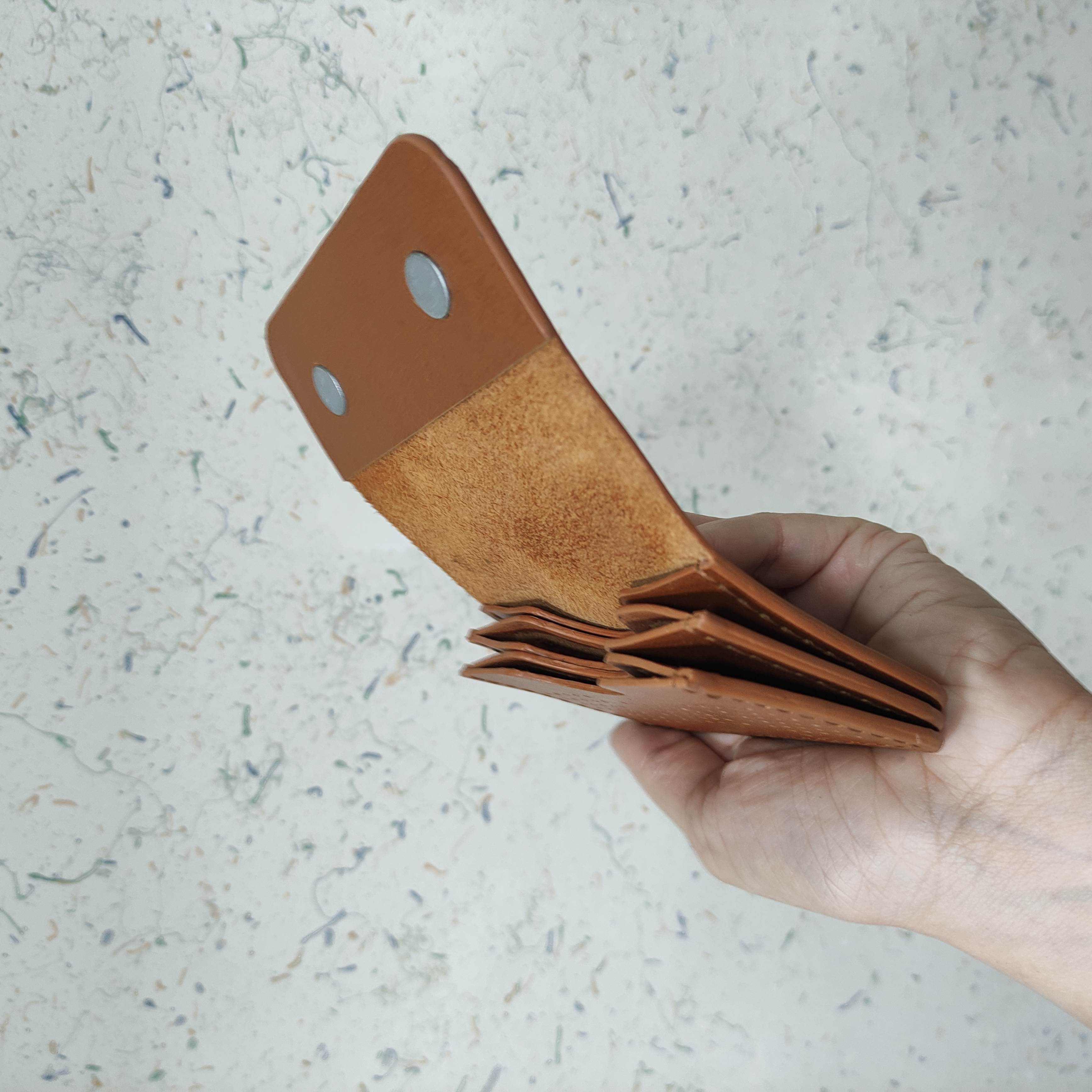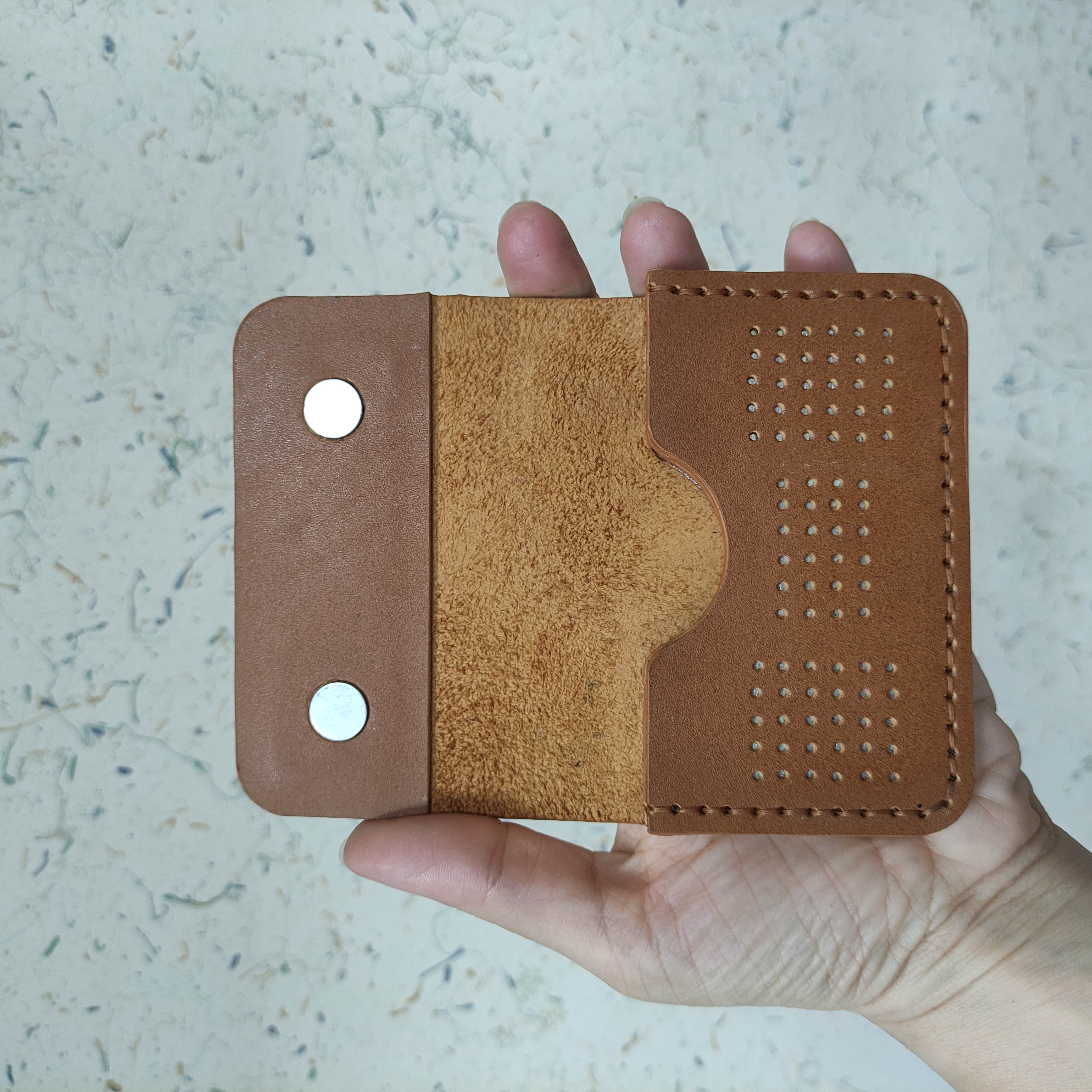 جنسچرم طبیعی گاویرنگعسلیسایز10/5*6/5ساختدستدوز و دستسازتعداد کارتجای 6عدد کارت داردمدل دربمغناطیسی،براساس حجم داخل جاکارتی درب قابل تنظیم است