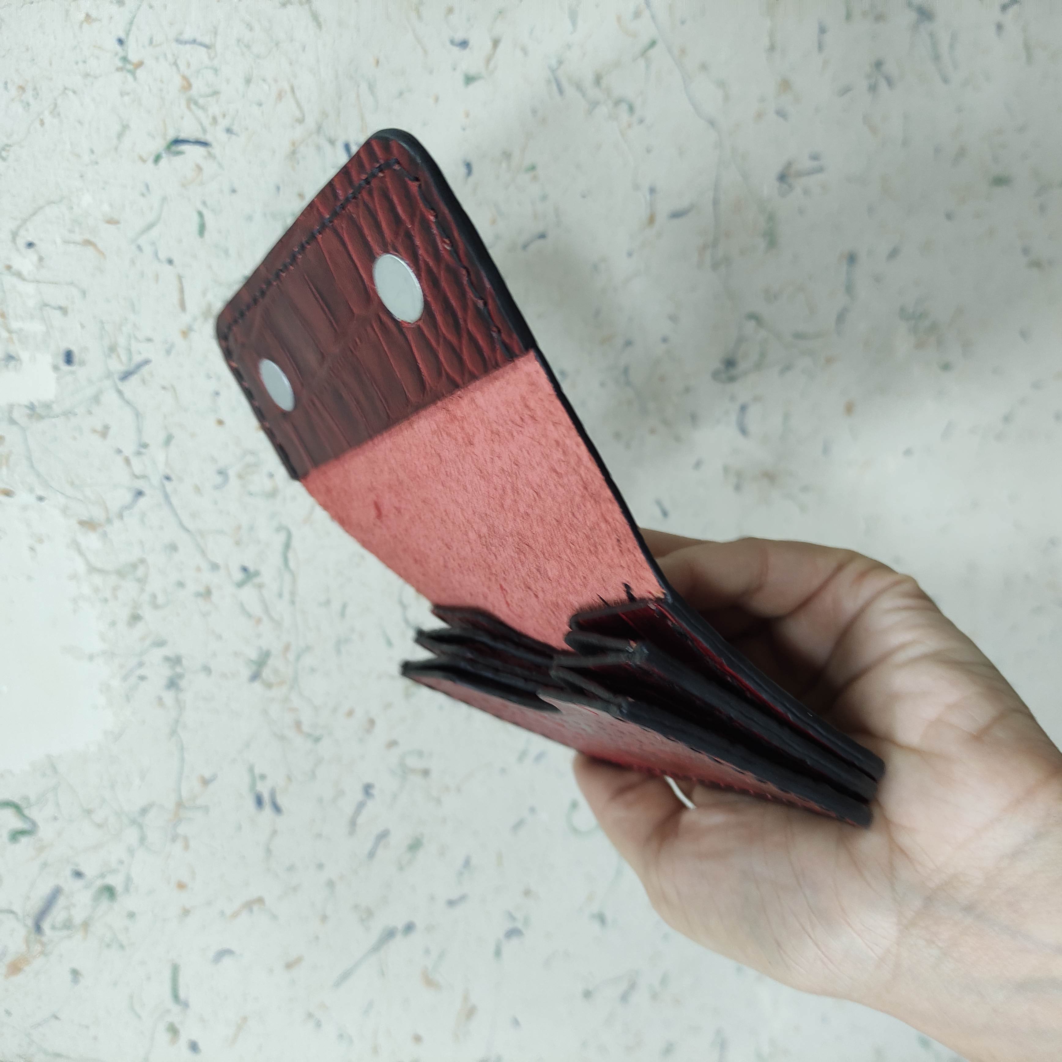 جنسچرم طبیعی گاویرنگزرشکیسایز10/5*6/5ساختدستدوز و دستسازتعداد کارتجای 6عدد کارت داردمدل دربمغناطیسی،درب براساس حجم داخل جاکارتی قابل تنظیم است