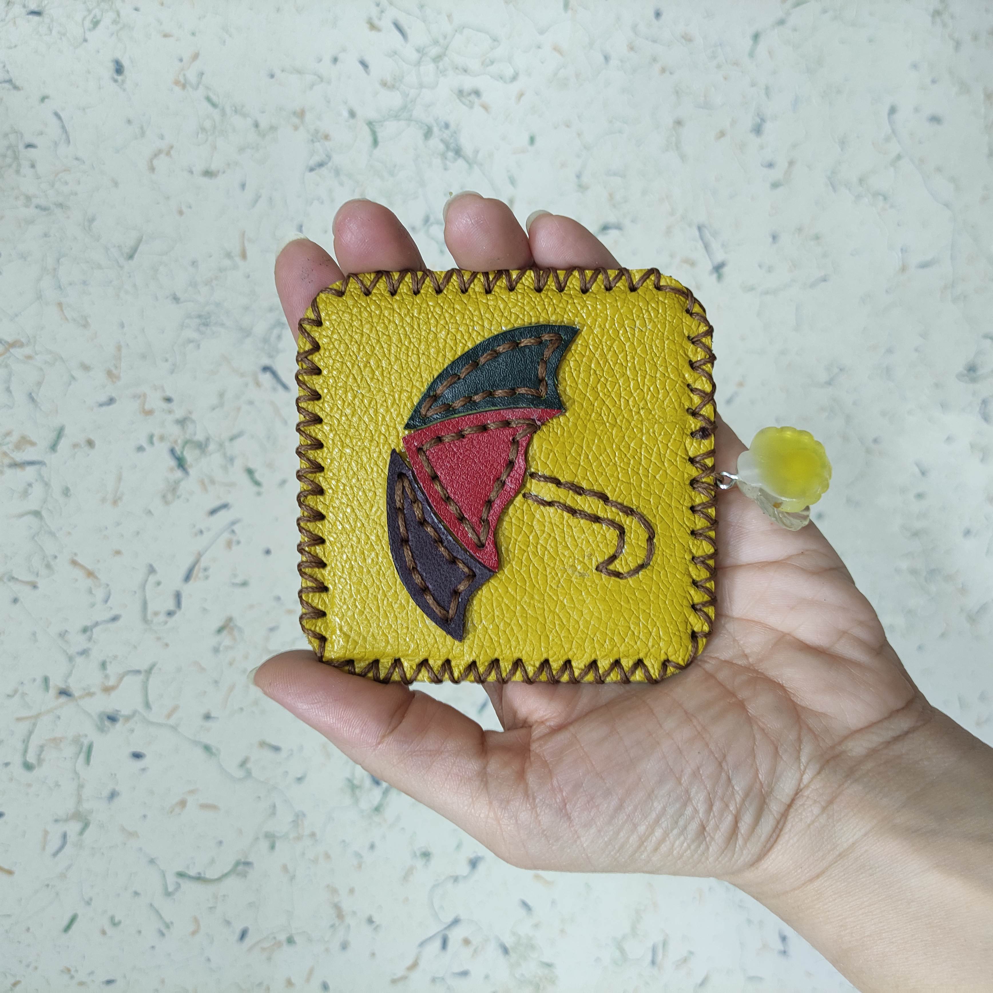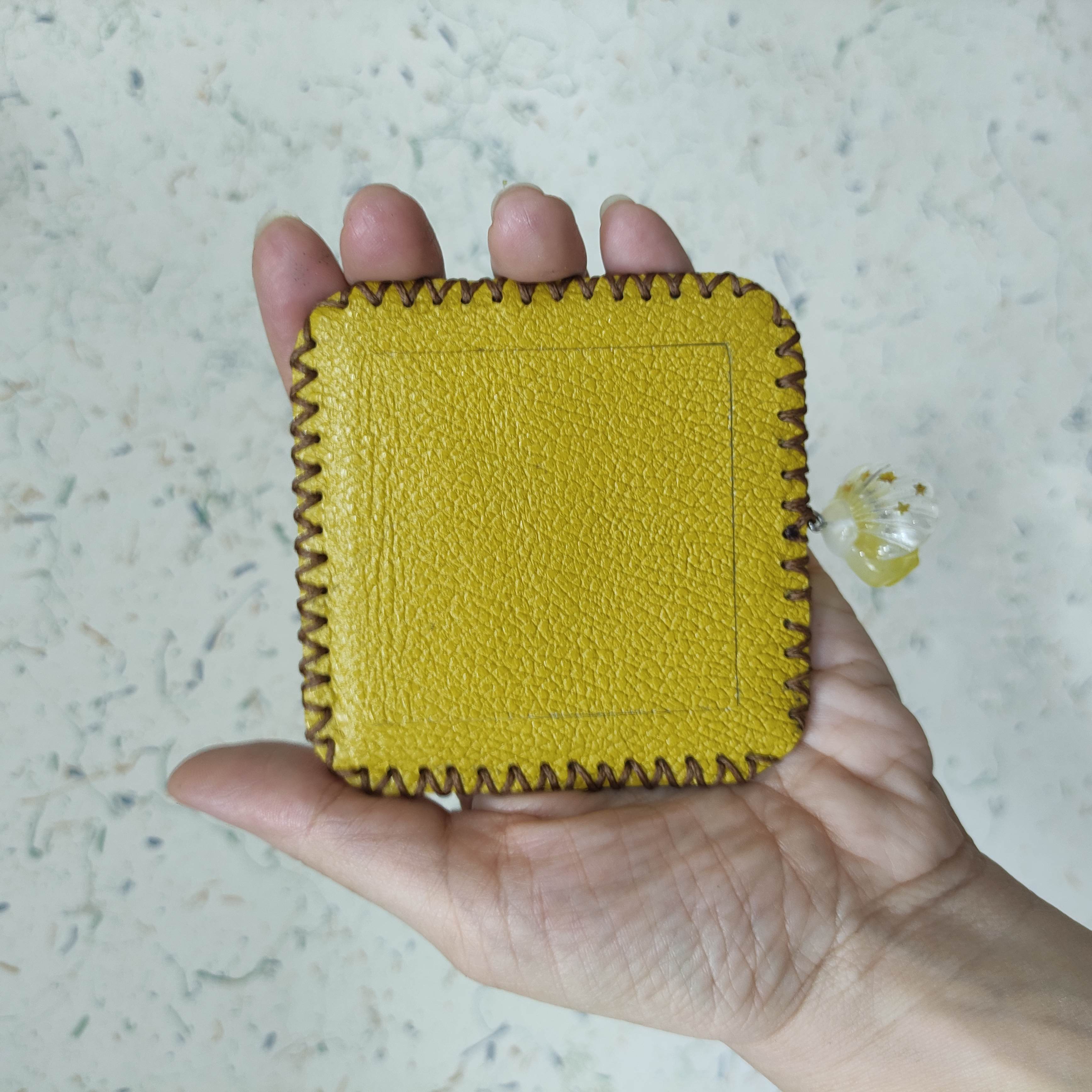 آینه چرم زنانه دلوان کاملا دستدوز و دستساز زرد