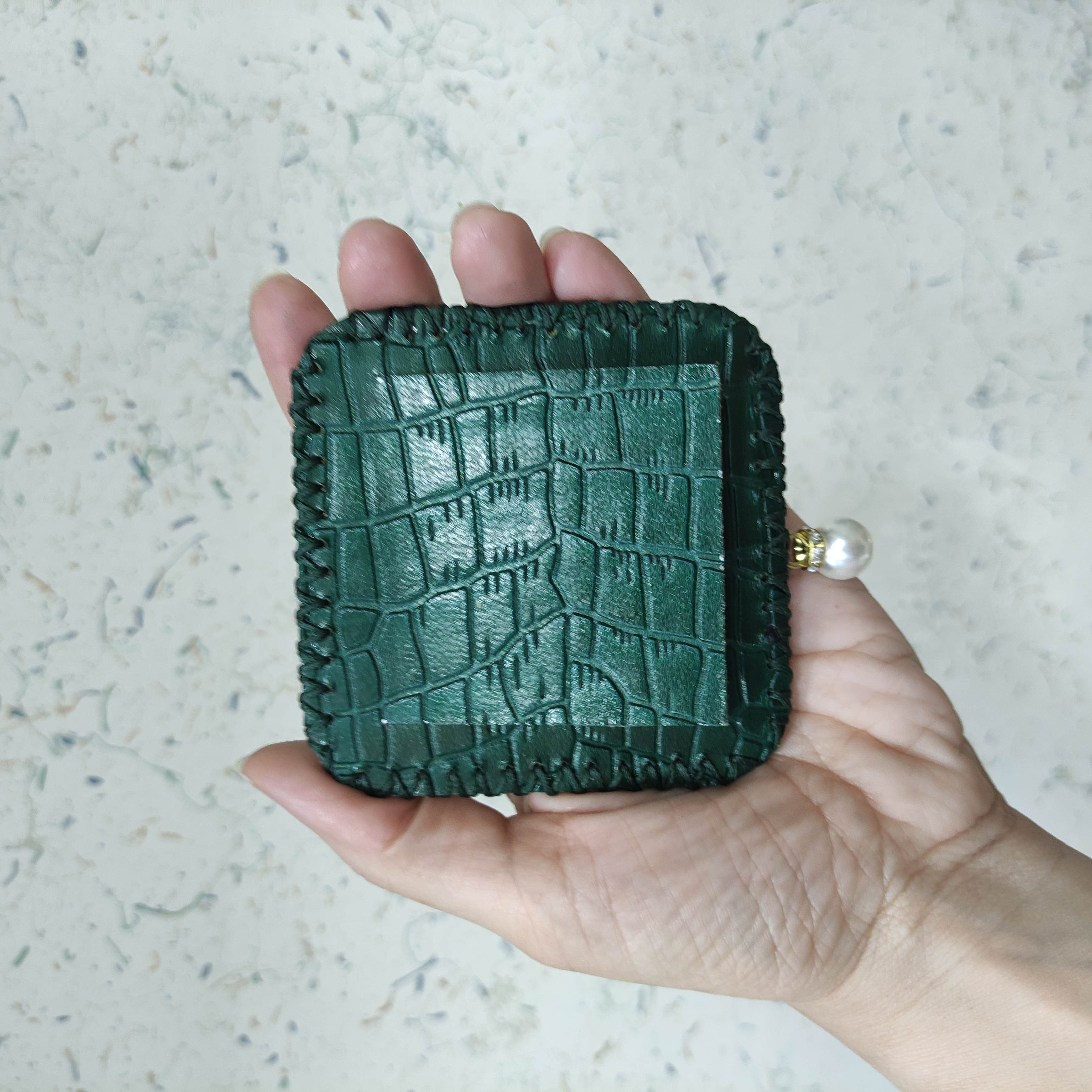 آینه چرم زنانه دلوان کاملا دستدوز و دستساز سبز