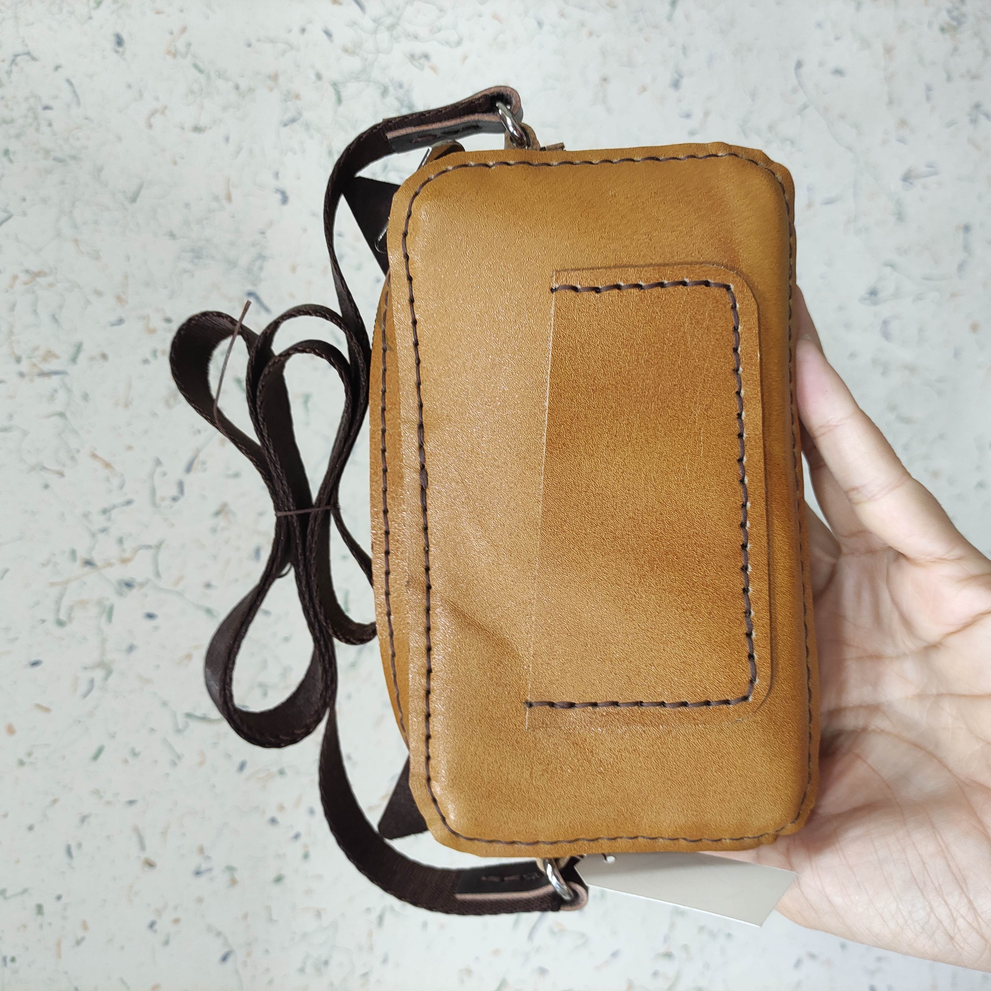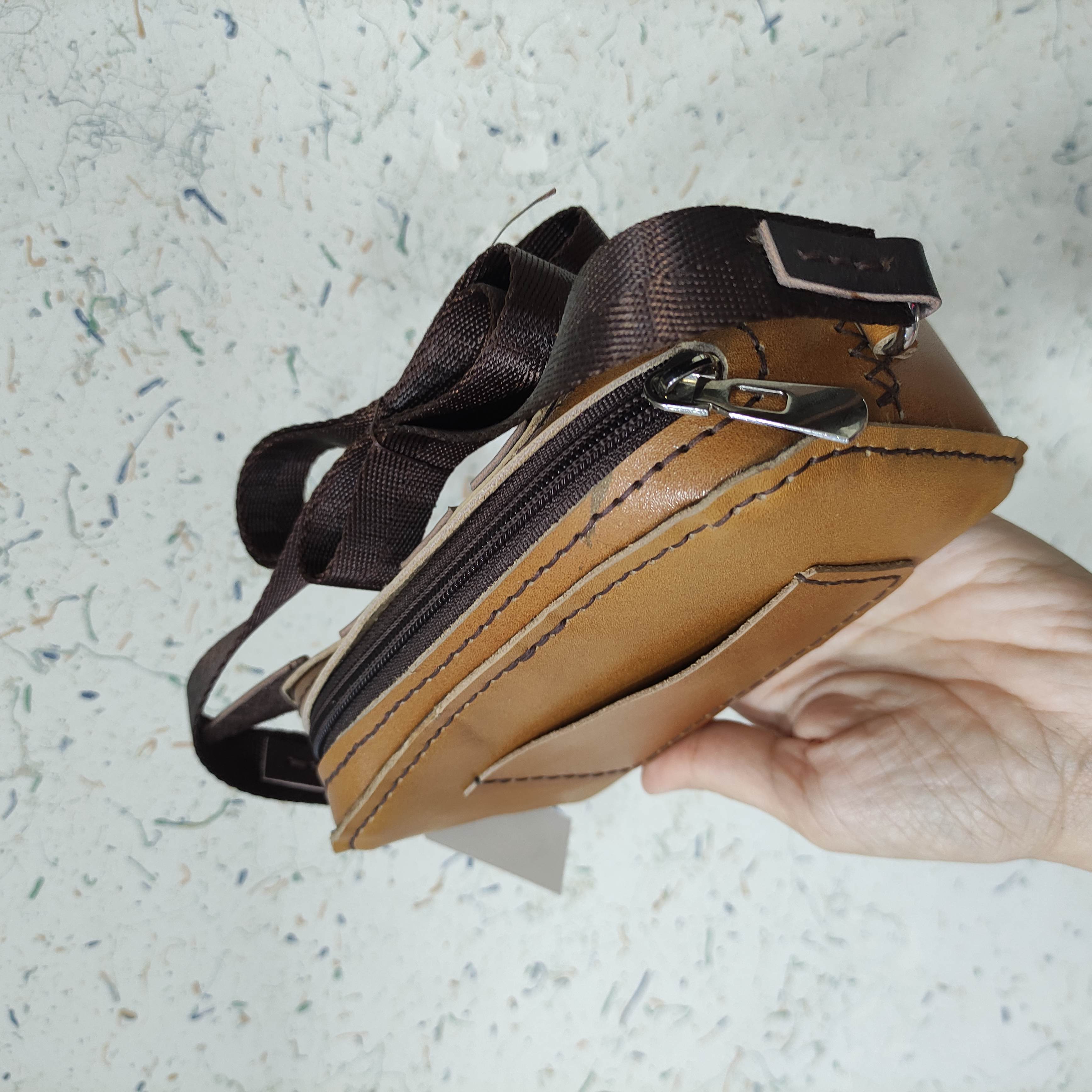 جنسچرم طبیعی گاویرنگعسلیسایز17*10طرح کیففانتزی تیکه دوزیجیبپشت کیف ۱ عدد جیب داردجنس بندبرزنت قهوه ای
