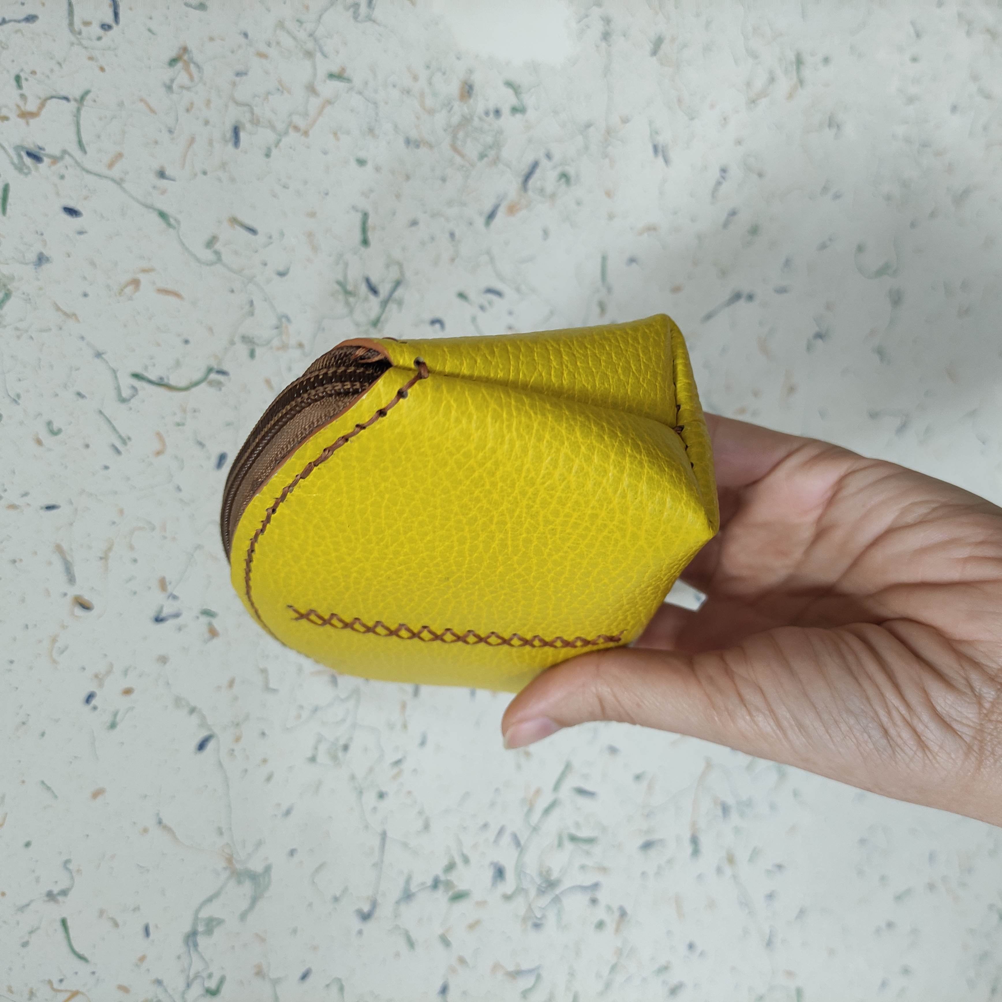 کیف پول/لوازم ارایشی چرم زنانه دلوان کاملا دستدوز و دستساز زرد